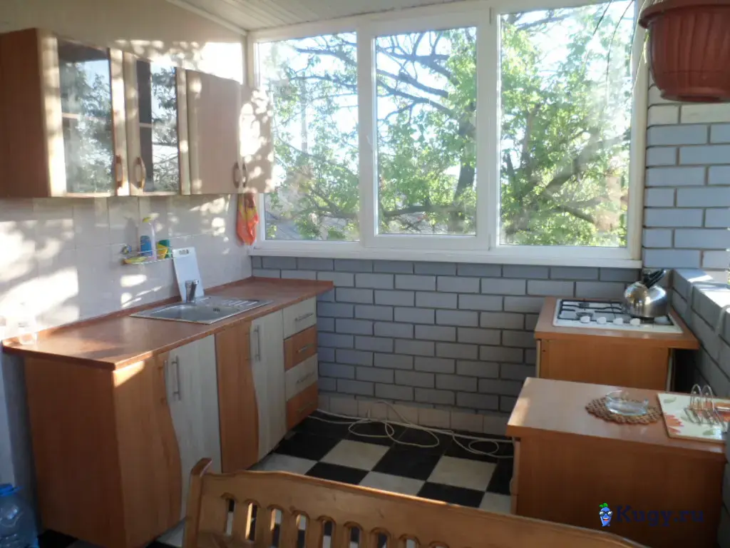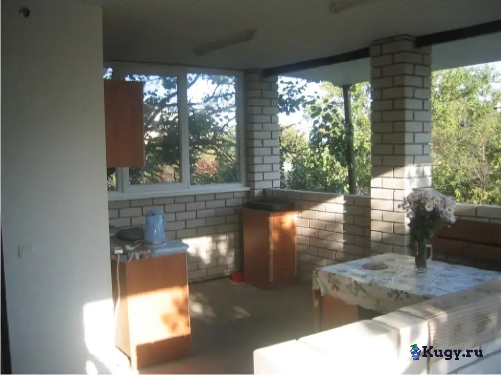 На террасе 2-го этажа (18,5 кв.м) для 3-х номеров- гладильная комната, оборудованная мини кухня с посудой.